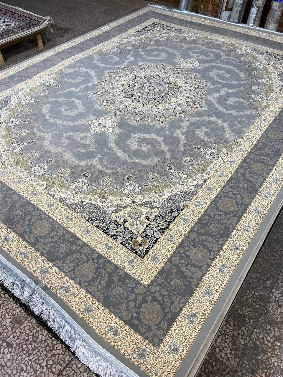 قالیچه فرش ماشینی کاشان440شانه بی سی اف طرح پتینه نقره ای4متری2،25در1،5(باارسال رایگان)