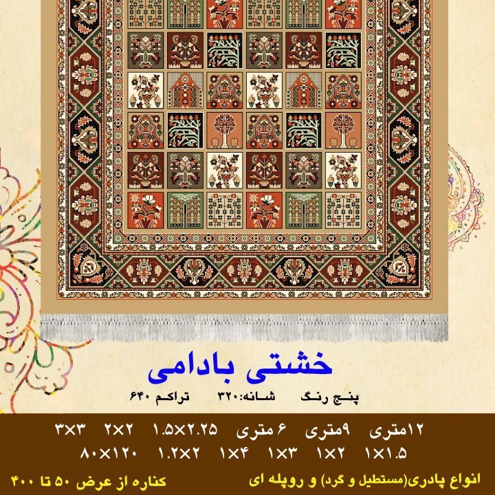 گلیم فرش ماشینی کاشان طرح خشتی بادامی6متری(هزینه ارسال باخریداروپس کرایه میباشد)