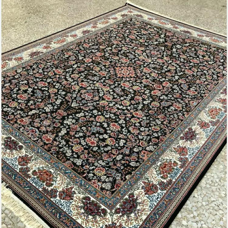 فرش 700شانه ماشینی کاشان ورژن طرح افشان رزسرمه ای6متری(باارسال رایگان)