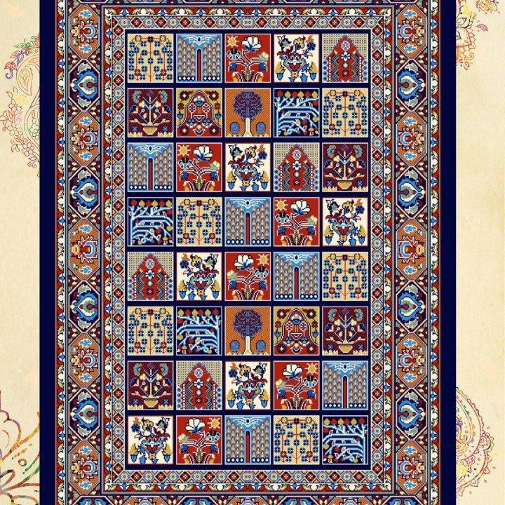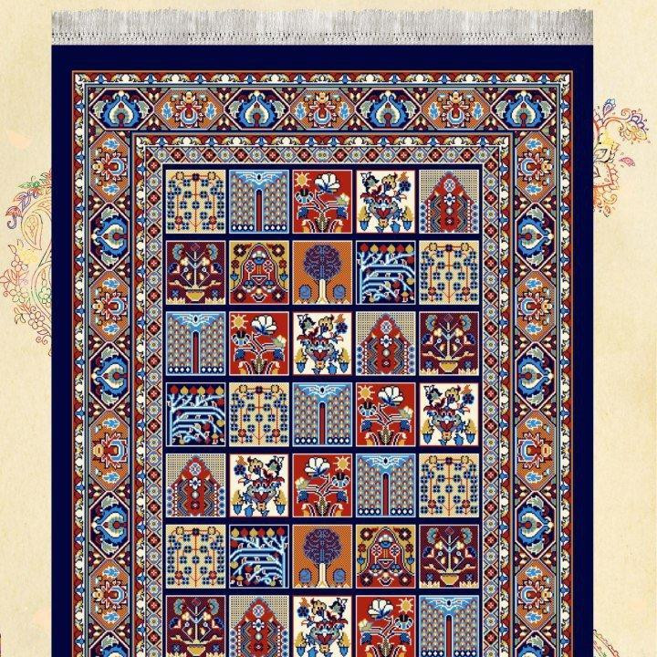 گلیم فرش ماشینی کاشان طرح خشتی سرمه ای6متری(هزینه ارسال باخریداروپس کرایه میباشد)