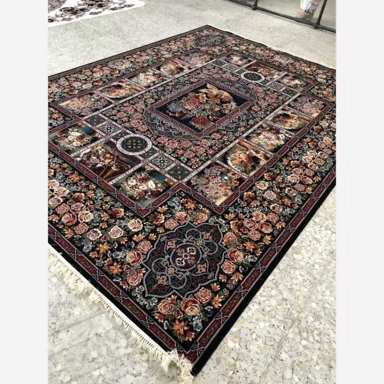 فرش ماشینی کاشان 700شانه اصلی طرح باغ ارم سرمه ای6متری(باارسال رایگان)