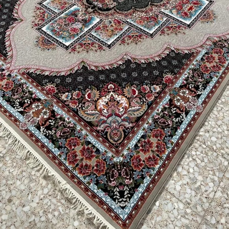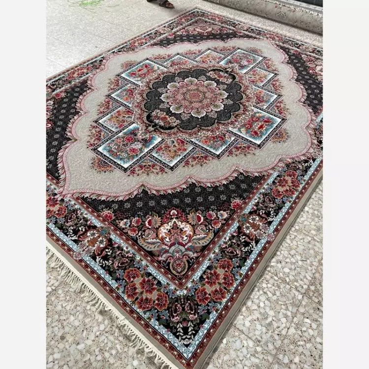 فرش ماشینی کاشان 700شانه اصلی طرح ناردون مشکی6متری2عددی(باارسال رایگان)