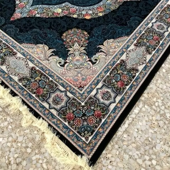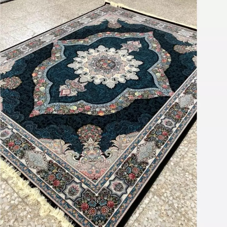 فرش ماشینی کاشان 100درصدآکرلیک 700شانه طرح کاریناسرمه ای6متری(باارسال رایگان)