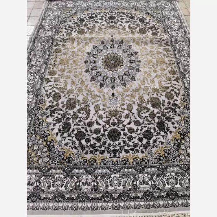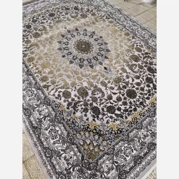 فرش ماشینی کاشان نخ بی سی اف طرح وینتیج نقره ای 6متری (باارسال رایگان)