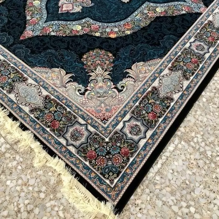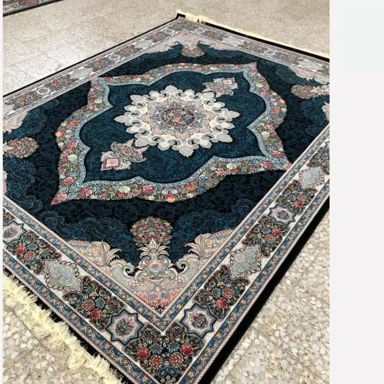 فرش ماشینی کاشان 700شانه آکرلیک طرح کاریناسرمه ای12متری(باارسال رایگان)
