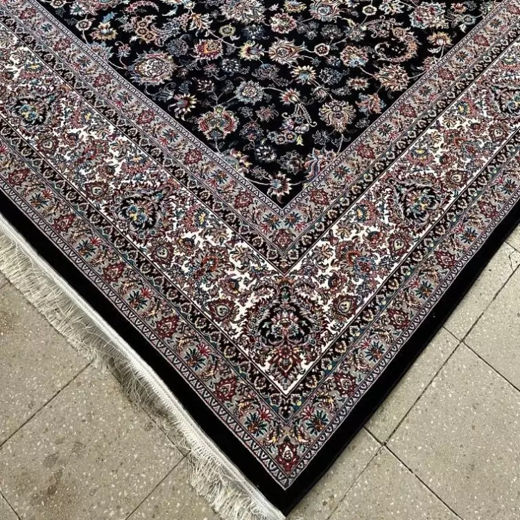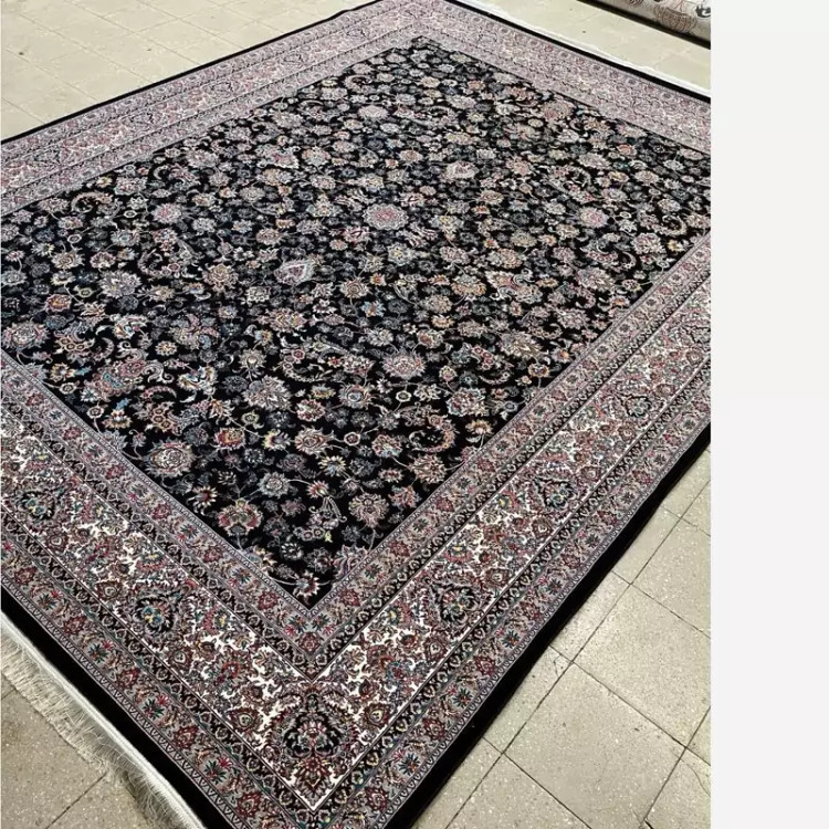 فرش ماشینی کاشان 700شانه فرش جهیزیه100درصدآکرلیک طرح افشان گلریزسرمه ای12متری2عددی(باارسال رایگان)