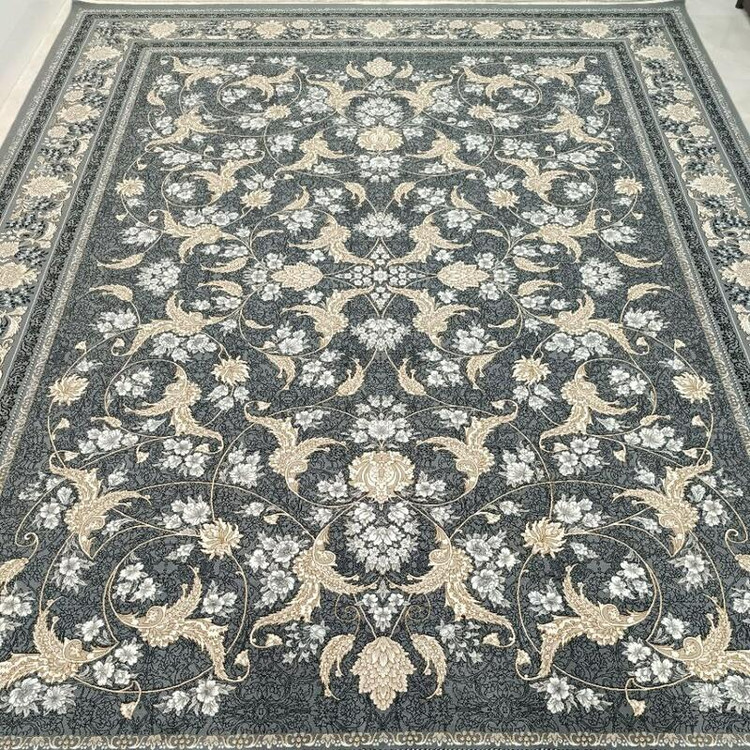 فرش ماشینی کاشان 700شانه 100درصدآکرلیک طرح سوین طوسی12متری(باارسال رایگان)