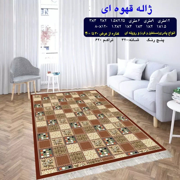 گلیم ماشینی کاشان طرح ژاله قهوه ای سایز2در120(هزینه ارسال باخریداروپس کرایه میباشد)