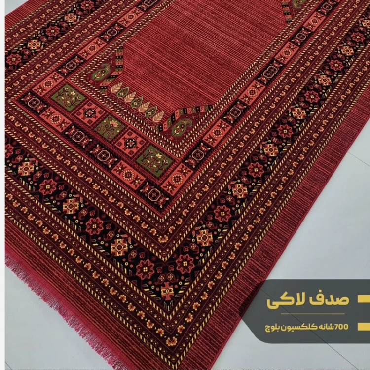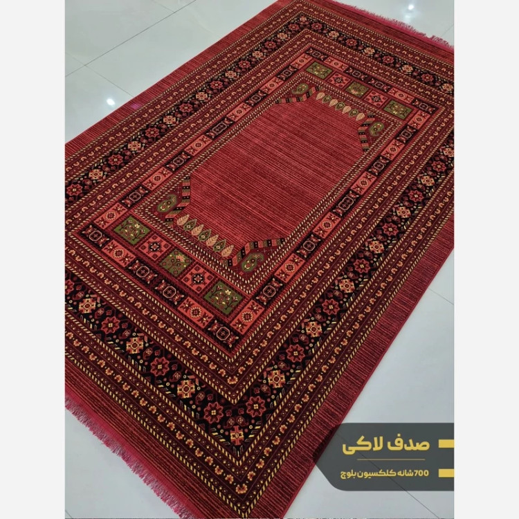 فرش قرمزبلوچی ماشینی کاشان 700شانه آکرلیک طرح صدف لاکی6متری(باارسال رایگان)