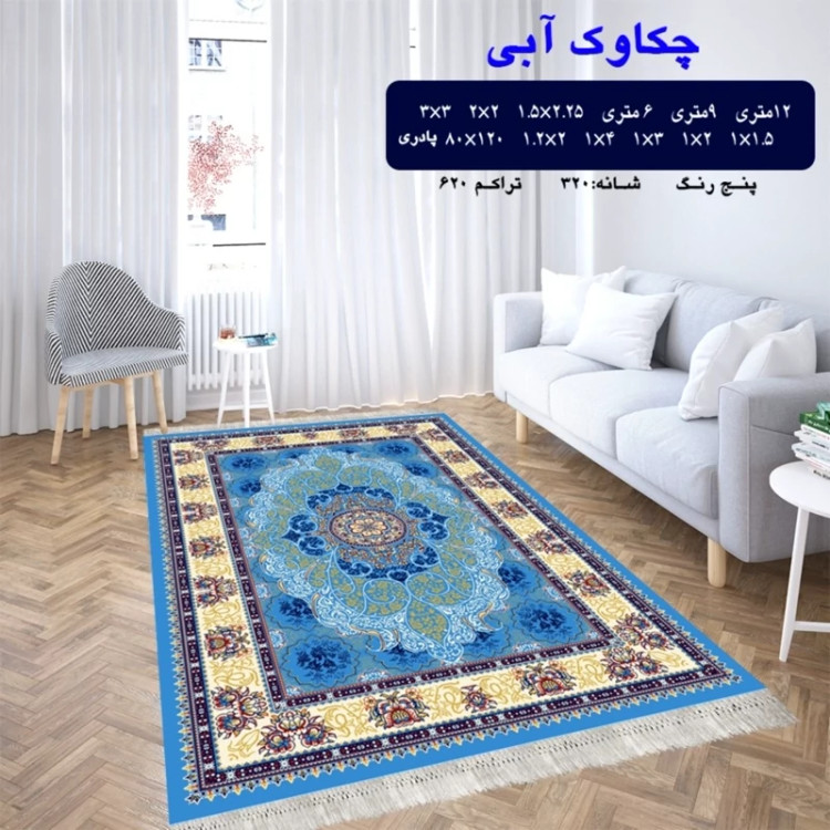 گلیم ماشینی کاشان طرح چکاوک آبی سایز4در1متر(هزینه ارسال باخریداروپس کرایه میباشد)