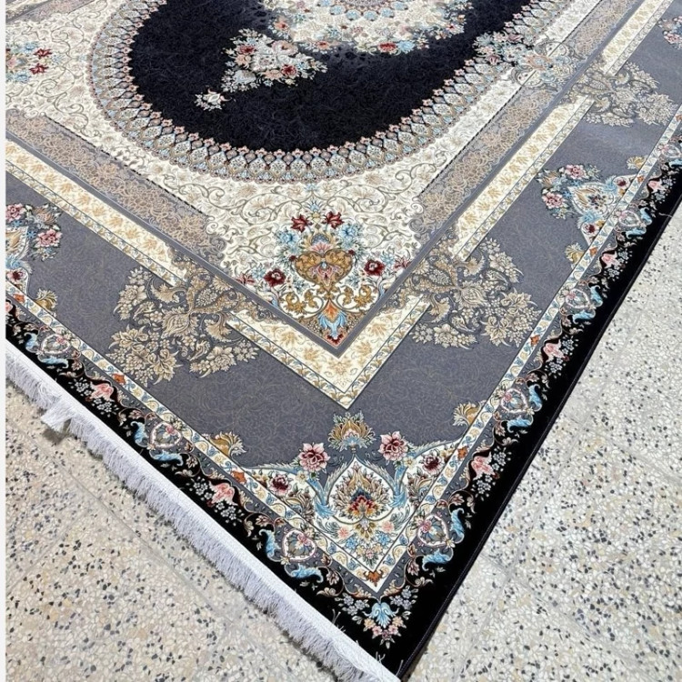 فرش 12متری 1200شانه ماشینی کاشان طرح چیچک سرمه ای(باارسال رایگان)