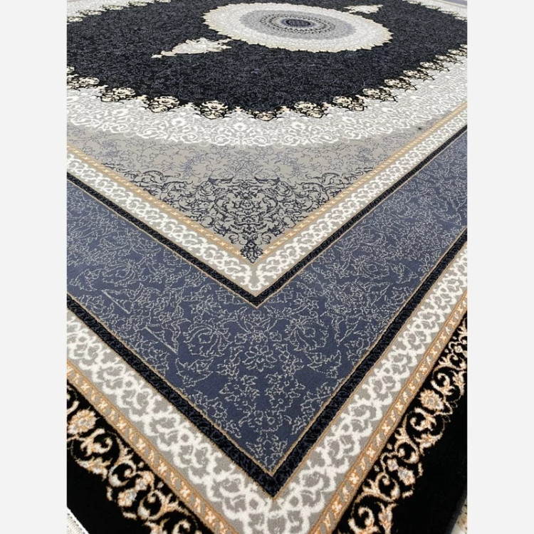 فرش ماشینی کاشان 700شانه12متری طرح ساوین سرمه ای2عددی(باارسال رایگان)