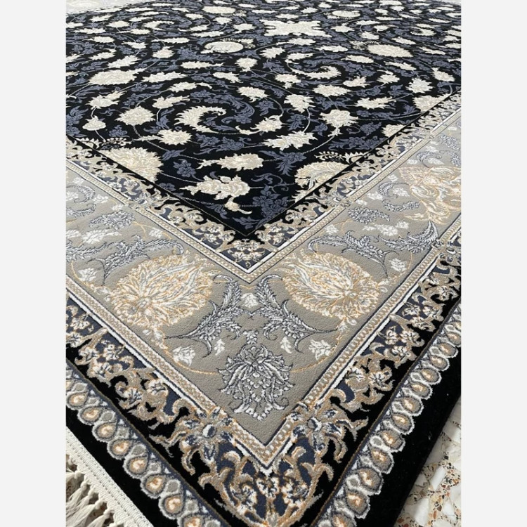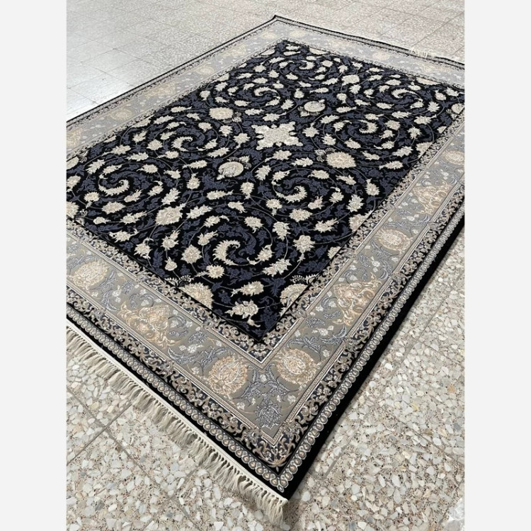 فرش ماشینی کاشان 700شانه 6متری طرح افشان درباری سرمه ای2عددی(باارسال رایگان)