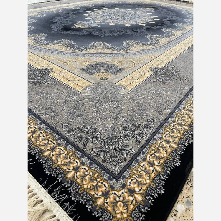 فرش ماشینی کاشان 700شانه 9متری طرح کارن سرمه ای2عددی(باارسال رایگان)