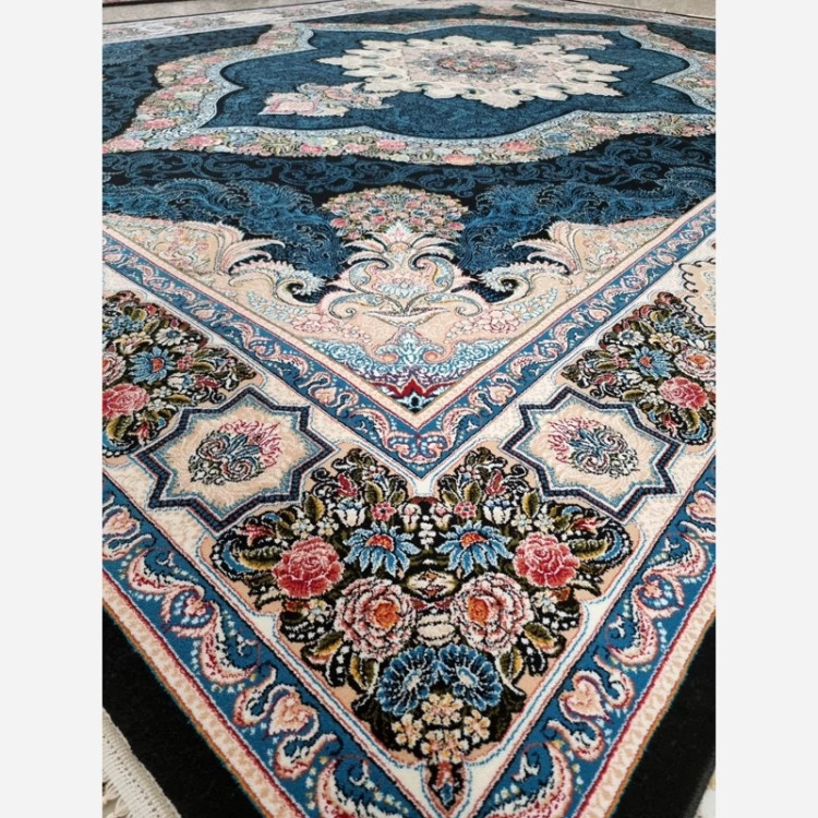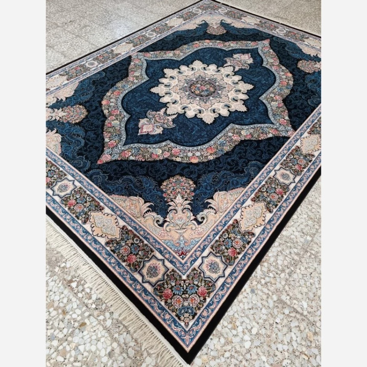 فرش ماشینی کاشان700شانه6متری طرح کاریناسرمه ای 2عددی(باارسال رایگان)