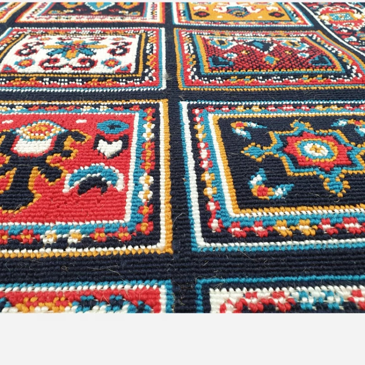 کناره گلیم ماشینی کاشان طرح کژال سرمه ای سایز150در120(هزینه ارسال باخریداروپس کرایه میباشد)