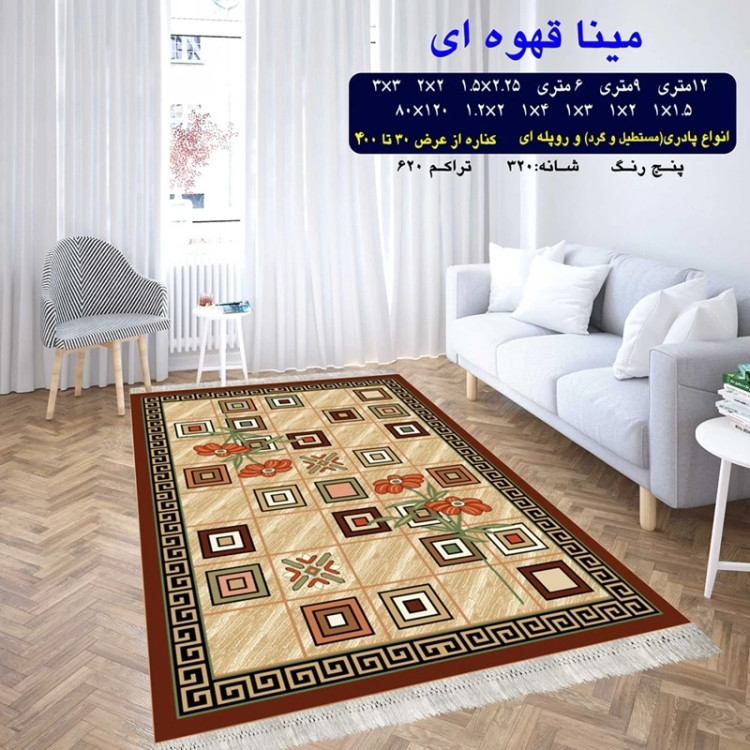 گلیم ماشینی کاشان طرح میناقهوه ای سایز2در1(هزینه ارسال باخریداروپس کرایه میباشد)