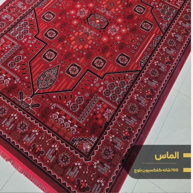 فرش قرمز بلوچ ماشینی کاشان 700شانه100درصدآکرلیک طرح الماس9متری(باارسال رایگان)