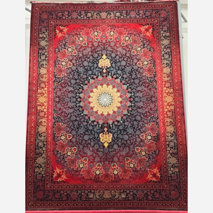 فرش قرمز 1200 شانه ماشینی کاشان طرح تابان لاکی زرد 9متری(باارسال رایگان)