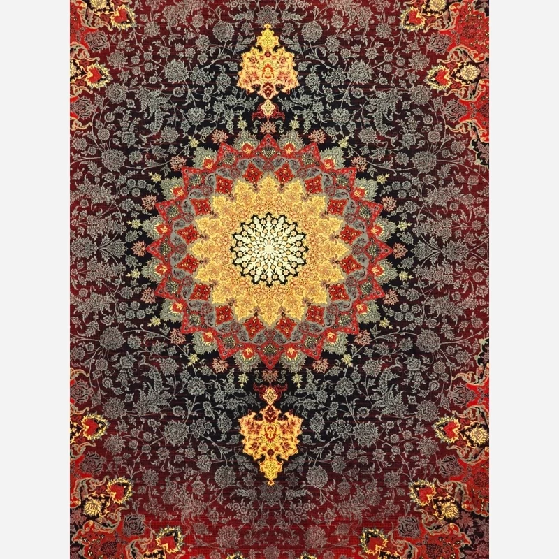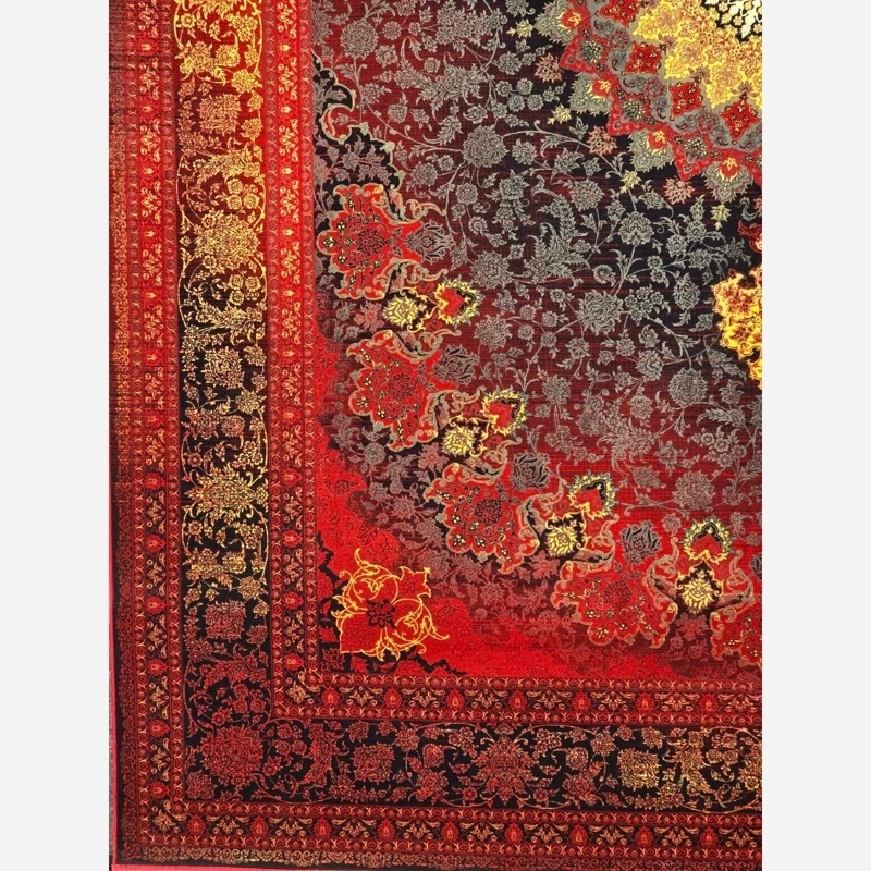 فرش قرمز 1200 شانه ماشینی کاشان طرح تابان لاکی زرد 9متری(باارسال رایگان)