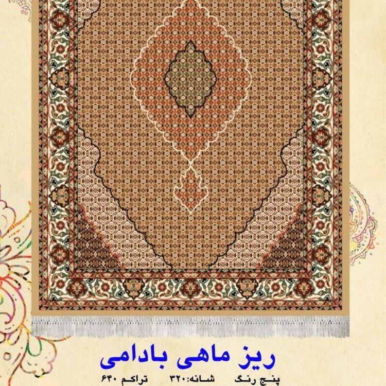 گلیم ماشینی کاشان طرح ریز ماهی بادامی6متری(هزینه ارسال باخریداروپس کرایه میباشد)