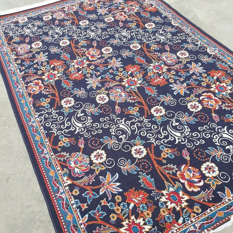 گلیم فرش ماشینی کاشان طرح پیچک سرمه ای سایز6متری(هزینه ارسال باخریداروپس کرایه میباشد)