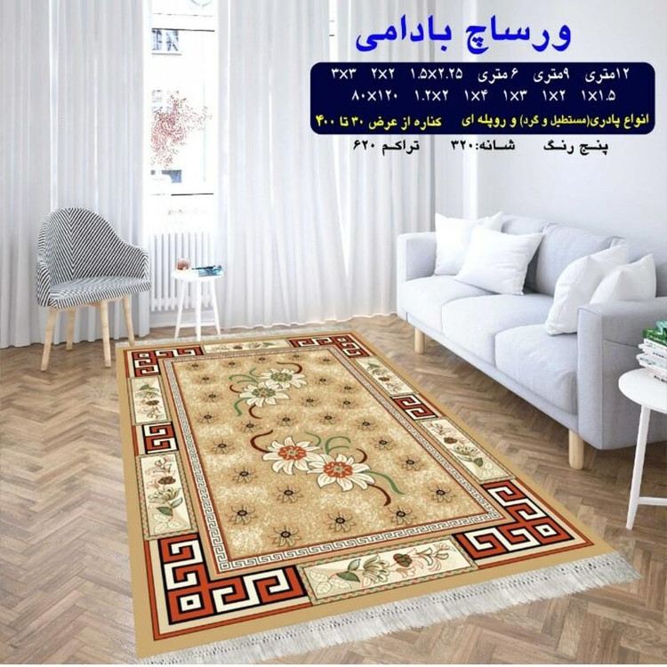 پادری گلیم ماشینی کاشان طرح ورساچ سایز120در80سانت(هزینه ارسال باخریداروپس کرایه میباشد)