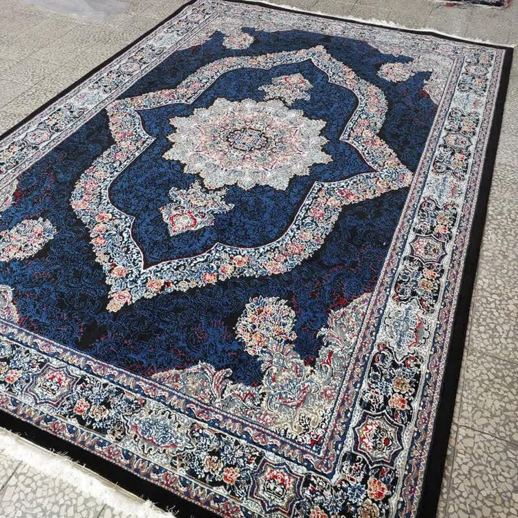 فرش ماشینی کاشان طرح کاریناسرمه ای6متری(BCF)باارسال رایگان
